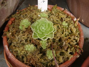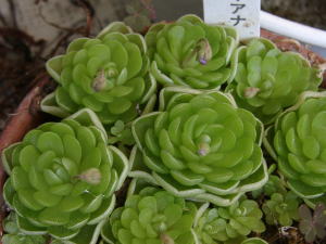 子株がだいぶ増えました。 esserianaは葉挿しで簡単に増やせるのでいいですね。 去年は花をつけなかったのですが、今年は花を拝めるでしょうか。 (2003 11/22) |
