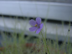 花が咲きました。 薄紫色の1センチにも満たない花です。 花は朝開いて、夕方にはいったん閉じ、翌朝また開くといった具合です。 この花の他にもつぼみがいくつか上がって来ているので、当分の間花が楽しめそうです。 ただ、ビブリスは1年草なので、種がちゃんと獲れるかがちょっと心配です。 (2002 7/20) |
