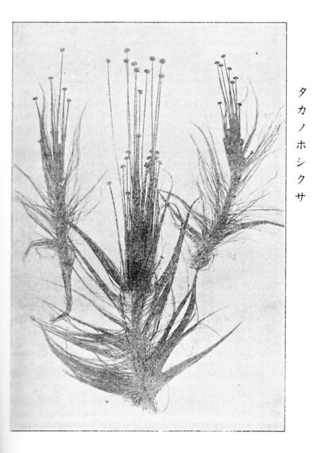 | 明治四二年八月一〇日高野貞助氏(当時太田中学邑楽分校教諭)により、多々良沼で発見された新種で、未だに他に産地を見ない貴重な植物である。和名「タカノホシクサ」は、発見者の姓を記念して牧野富太郎博士により命名されたものである。そしてこの新種タカノホシクサは、植物学雑誌第ニ四巻第ニ八三号一六五〜一六七頁(明治四三年八月ニ〇日発行)に、牧野博士により発表され学会をはじめ多くの人々に知れわたったのである。 タカノホシクサの特徴は、水中に生える稀な一年草で、茎は長くて太く、径三.五〜五ミリメートル、長さ四〜ニ〇センチメートルに達する。葉は茎に密につき柔らかくて糸状をなし、一脈があり長さ三〜一〇センチメートル。花茎は茎の頂にそう生し、高さ八〜ニ〇センチメートル、茎部の鞘は長さ三〜五センチメートル。花期は九月。頭花は扁球形、径三〜四ミリメートル、藍黒色。 「発見当時はずいぶんたくさんあったが、他に類のない珍しいものだといって、東京方面をはじめ他方の採集家が毎年夏季には多数群集して採集した結果今は殆んど絶滅しようとしている。」と発見者の高野氏は、昭和一一年一二月に東毛新聞に述べている。このことからわかるように発見後ニ七年余りで非常に減少してしまったのである。 このタカノホシクサは、ムジナモと共に昭和九年本県において行われた特別大演習の折、天覧に供し奉ったということである。また高野氏は、中野沼の一角にムジナモの保護地ができたならば、タカノホシクサもいっしょに移植して保護したいと願っていたが、かなえられずに今日に至ってしまった。 筆者は、タカノホシクサを昭和三七年一〇月七日に、多々良沼の南東の沼辺にてかなり自生しているのを確認した。この時は茎の殆んどは水中にあり、藍黒色の頭花が水上に出ていた。その後昭和三九年八月ニ九日、文部省文化財保護委員会天然記念物部会委員一行の本田正次博士、武田久吉博士、佐竹義輔博士の三名および関係係官がムジナモ調査のため多々良沼へ調査に訪れた際に、船上からホシクサ科の権威である佐竹博士もタカノホシクサを探されたが見つけることはできなかった。発見後五〇年たらずで絶滅したものと思われる。 この貴重な植物は、高野氏によれば発見当時多々良沼の西端向野土手の内外ならびに鶉新田の田圃等にたくさんあったということである。 |
