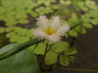 やっと猛暑も終わりでしょうか。朝晩は結構涼しくなりました。 去年の冷夏では生育が悪かった水草たちは、今年の猛暑はうれしかったのか、みんな元気に育っています。 水鉢4号に植えたガガブタが花を咲かせてくれました。 |