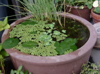 サンショウモ大増殖 おまけのつもりで入れたサンショウモが大増殖中です。あまり増えると水面を覆ってしまい、ムジナモのためのスペースが無くなってしまうので、増えすぎた分は他の容器に移しているのですが、数日でまた一杯になってしまいます。まあ、それだけ栄養分を吸収して水質浄化に役立ってくれているので良しとしましょう。 |