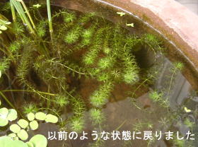 イトタヌキモ発見 サンショウモにくっついてきたのか、イトタヌキモがありました。おそらくオオバナイトタヌキモだと思います。とりあえずこのまま育ててみることにします。 |