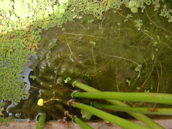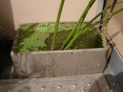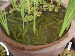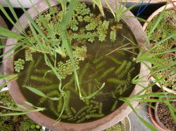 ●水鉢3号 水鉢3号、植えてあるポンテデリアは既に成長を止めました。それ以外は相変わらずほとんど変化はありません。 ムジナモもこちらはまだ冬芽形成は始まっていないようです。 |