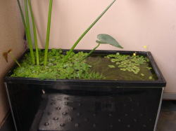 ムジナモは今のところいい感じに育っています。 このところの気温の上昇で、浮き草系が増殖して、アオミドロの発生を抑えているようです。 分岐も始まりました。たくさん増えてくれるとうれしいのですが。 |
