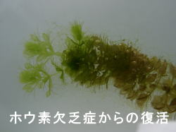 今年はなかなか梅雨が明けないので、ムジナモの生長もちょっとお預けといった感じです。 ムジナモの調子がなんとなくあまり芳しくありません。 ホウ素欠乏症を起こしている株が何株か見受けられます。ホウ酸の投入などによって持ち直してはきているのですが、まだ本調子には戻っていないようです。 |