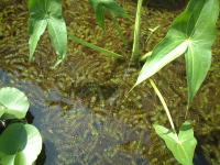 | 宇治市にある伊勢田小学校では、校庭にある通称“巨椋池”と呼ぶ池で、伊勢田史友会の方々の協力を得てムジナモを栽培。ムジナモを教材、学習素材として活用しています。 ここで育てられているのは巨椋池系統のムジナモで、毎年夏には池を覆いつくすほどに育っているようです。 ムジナモに関してのアンケートをお送りした所、快く応じてくださいましたので、以下にご紹介させていただきます。 (アンケートにお答えいただきました松田様にはこの場を借りて御礼申し上げます。ありがとうございました) |